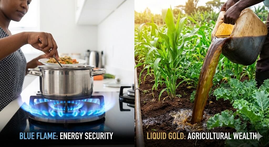 Let me paint you a scenario: the kitchen is quiet, save for the hiss of a blue flame flickering under a pot of beans. For millions of households across Africa, this sound means a final goodbye. Goodbye to buying expensive LPGs, charcoal smoke, or fetching firewood. Now, as we move through 2026, a new realization has been had outside the kitchen. While the gas does provide the energy, the dark liquid from the biodigester’s outlet provides the “wealth”. This is bio-slurry, the “black gold” of modern waste management. If you thought a biodigester was just about free cooking gas, you may be seeing half the picture. In fact, current data suggests that for the average farmer, the fertilizer value of bio-slurry is worth up to three times more than the energy produced.
